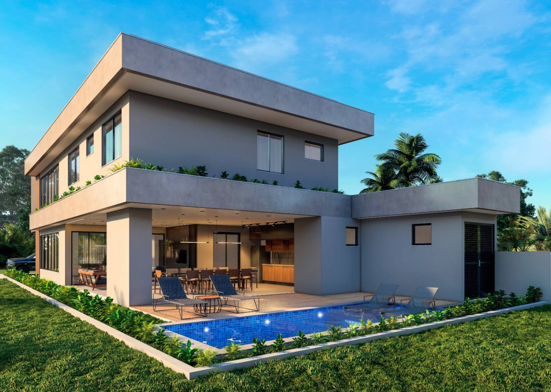 piscina privativa, jardim paisagístico, duas área externas descobertas, área de