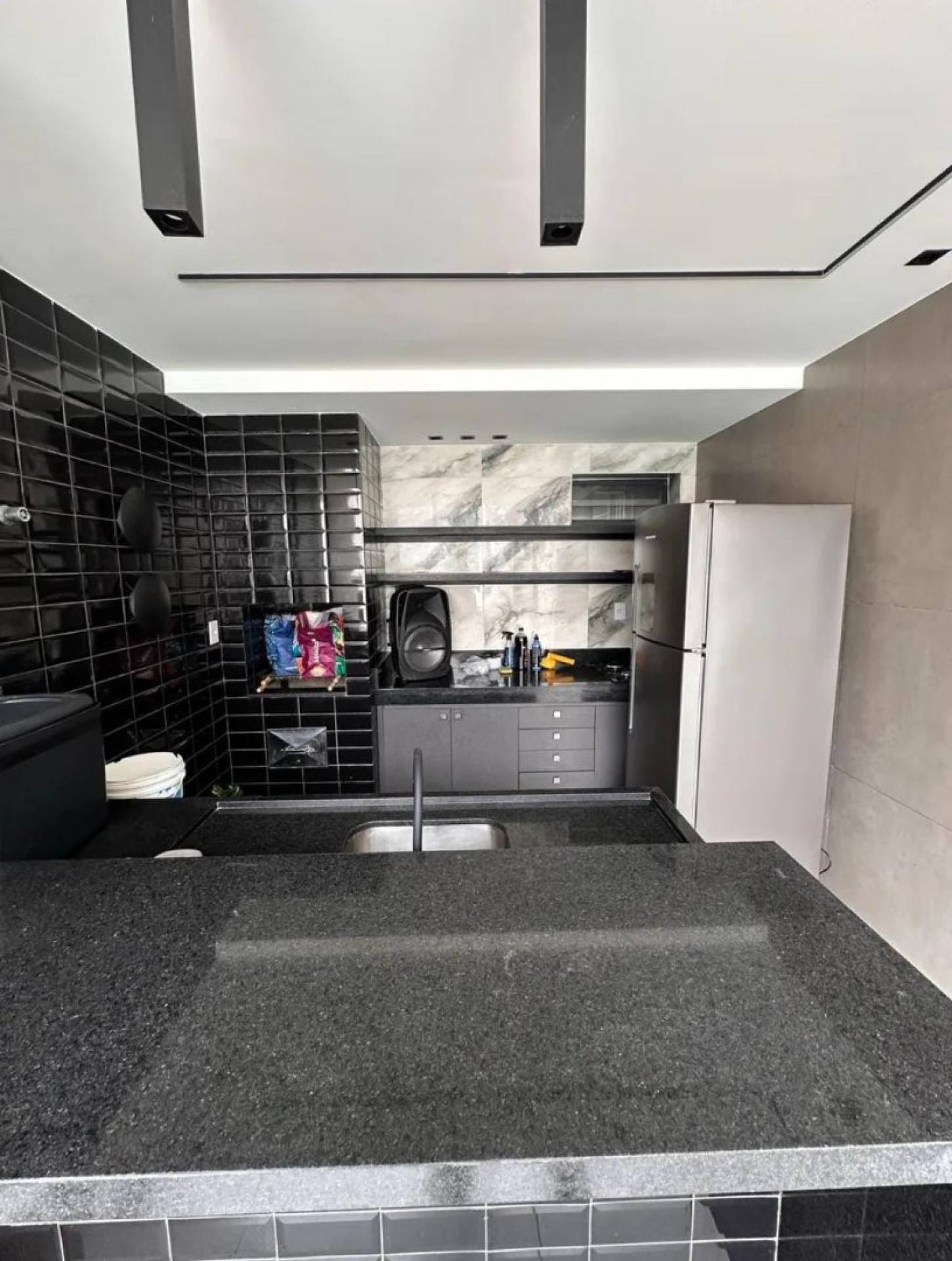 com cobertura, lavabo. Fica os planejados, portão elétrico, uma vaga de