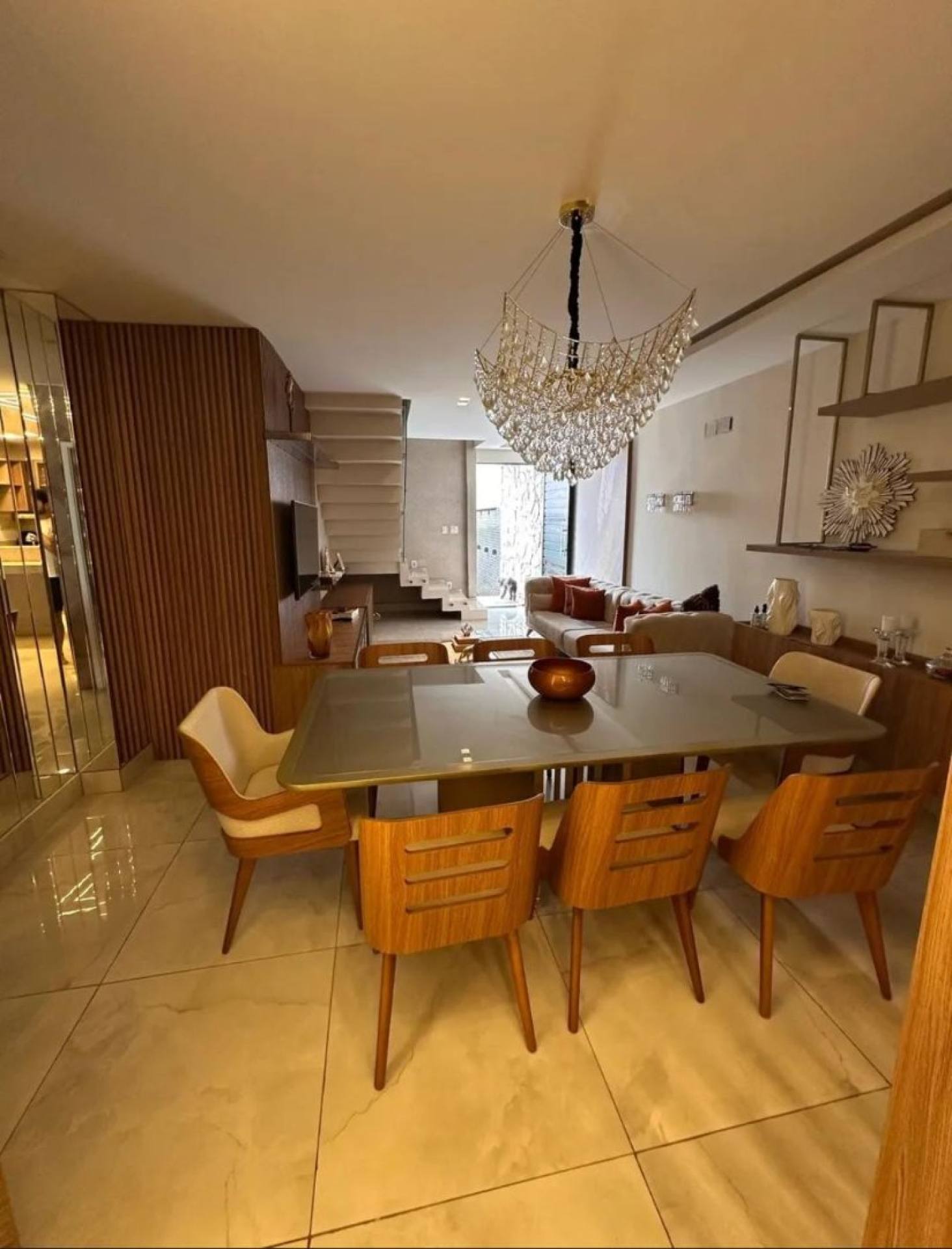Pav. superior com 2/4 sendo uma suíte com closet e varanda, sala. Pav. terraço