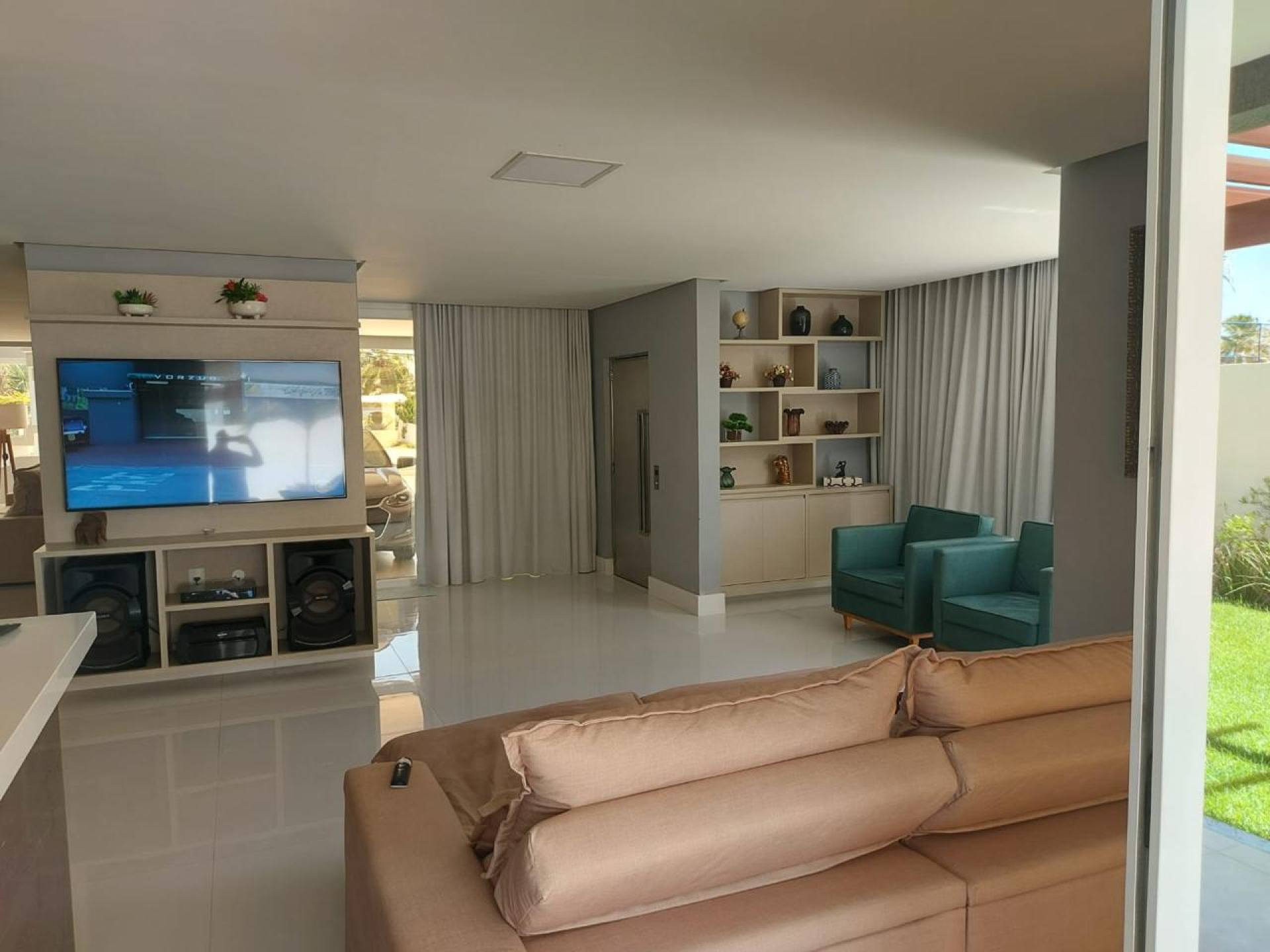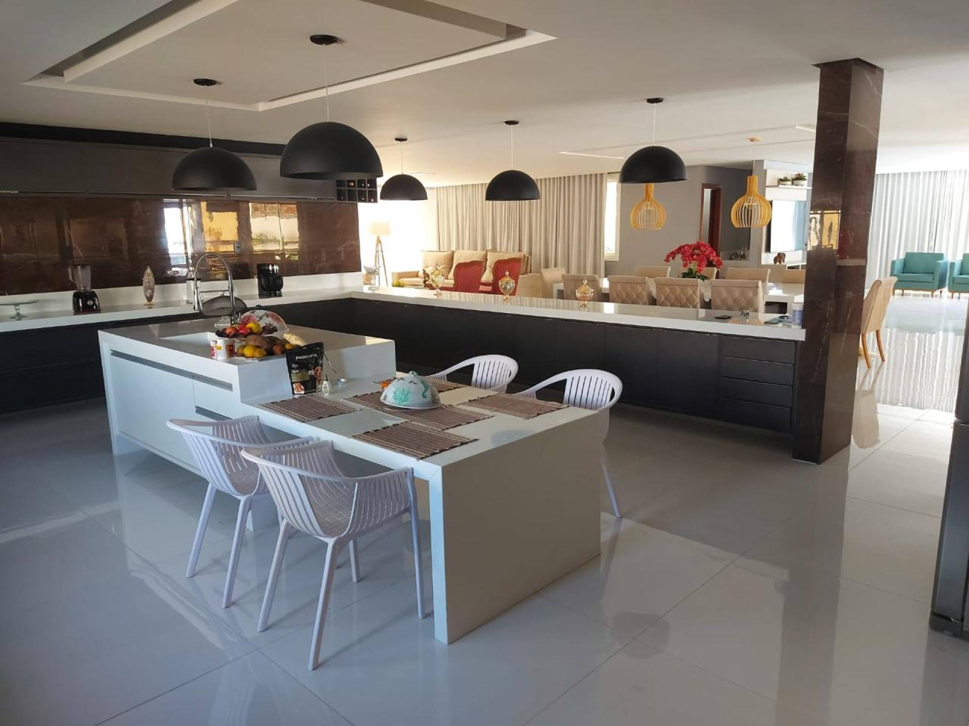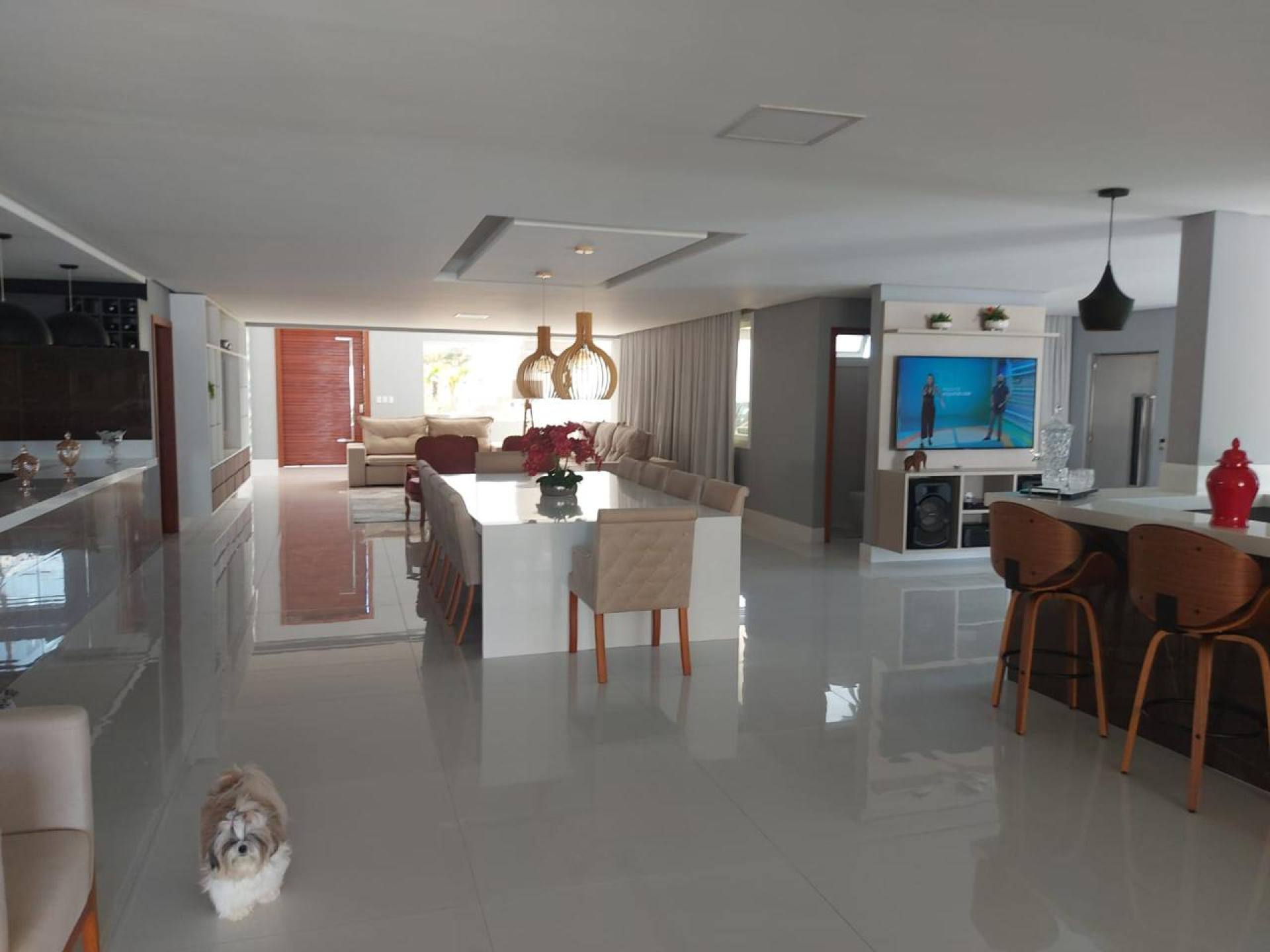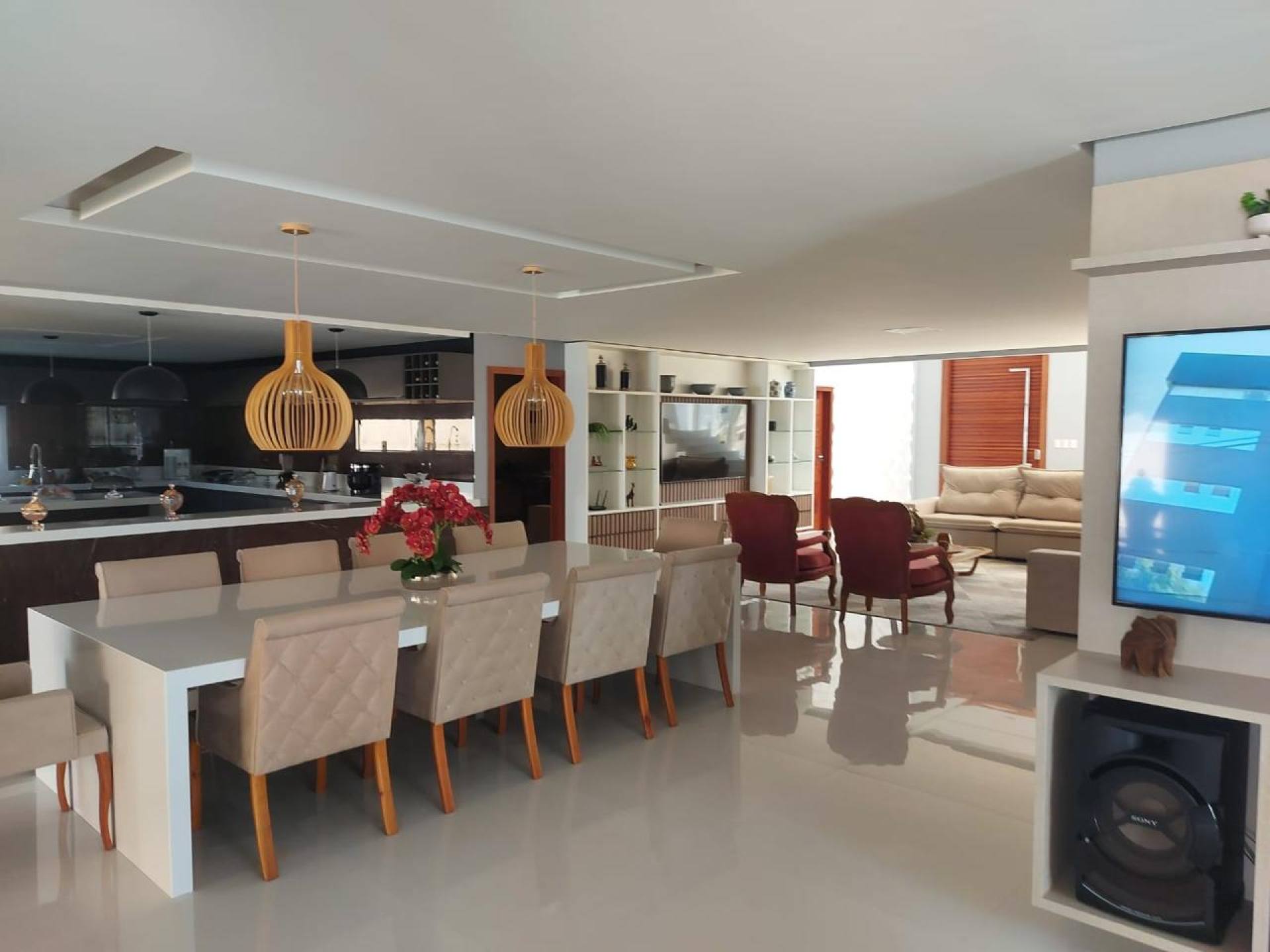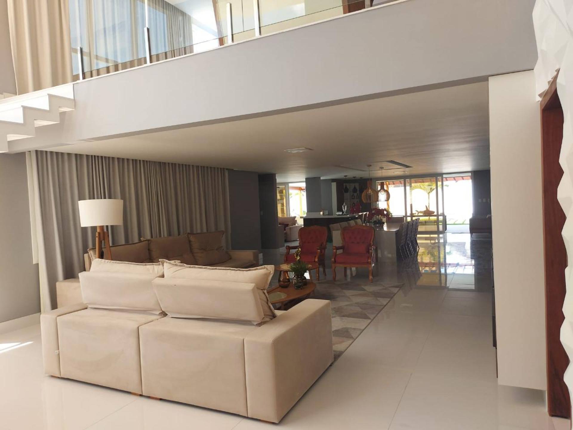 Casa com quatro suítes com closet, sendo três com hidromassagem, sala com pé direito duplo, dois lavabos, copa, varanda, DCE, área de serviço, espaço gourmet amplo com dois ambientes, piscina ampla, quatro vagas de garagem, área do terreno 25x48m², área útil de 1200m², área construída de 800m², frente leste.